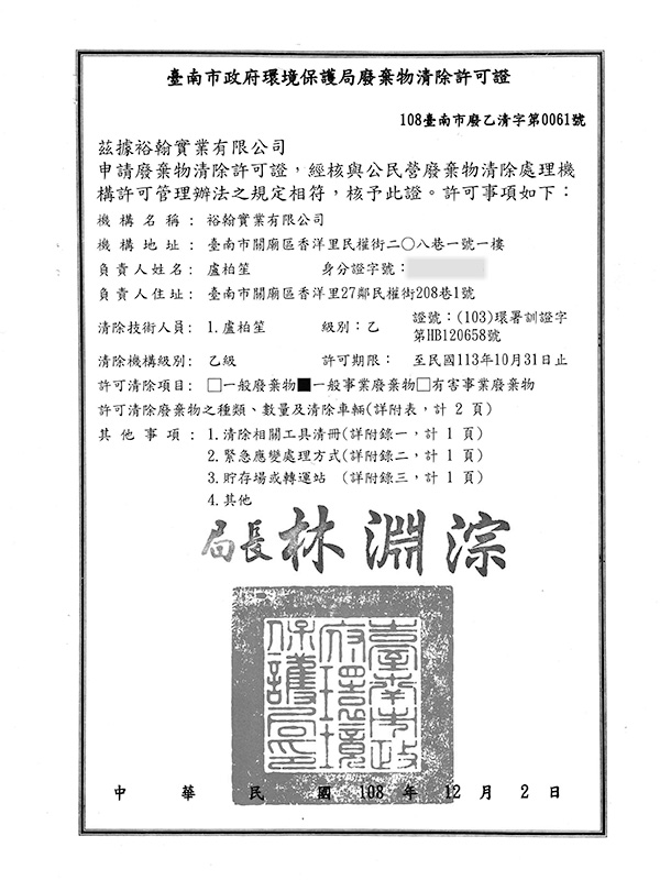 裕翰成立於民國103年1月14日,主要經營中古汽車零件及中古理化學儀器買賣,擁有合法乙級清除證照,我們堅持給客戶最好的,親切與迅速的服務是本公司的經營理念。秉持著服務熱忱,用誠信、負責的態度支援我們所有客戶,提供給顧客更大的價值及滿意度。